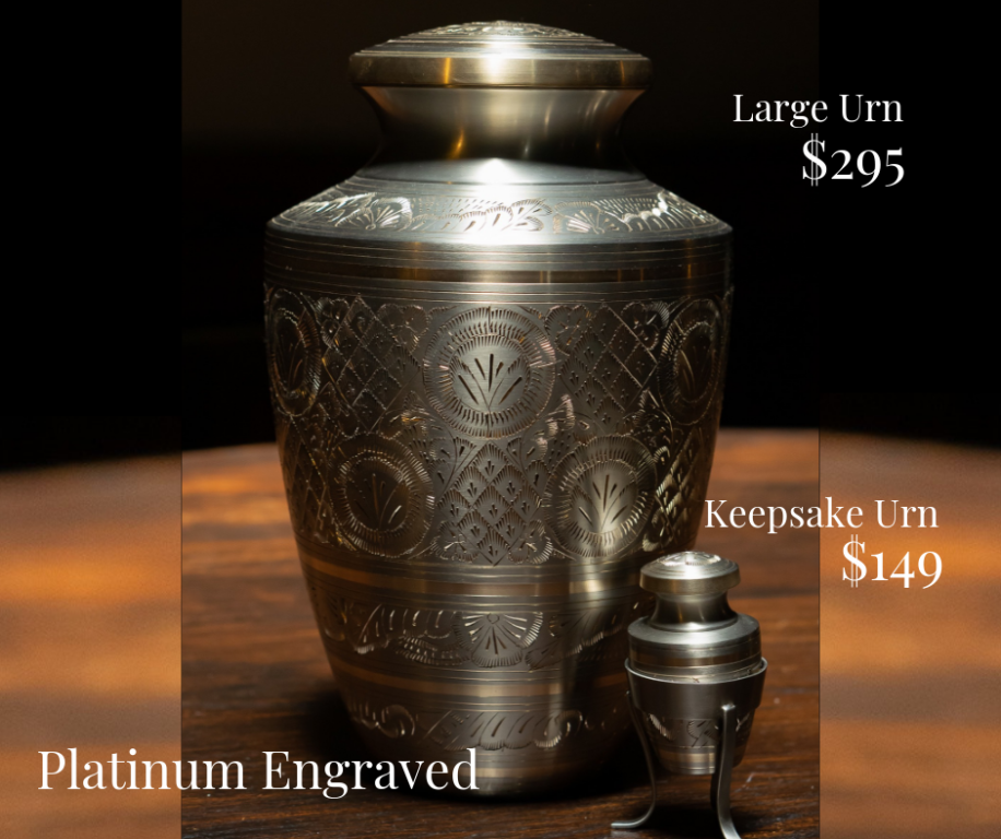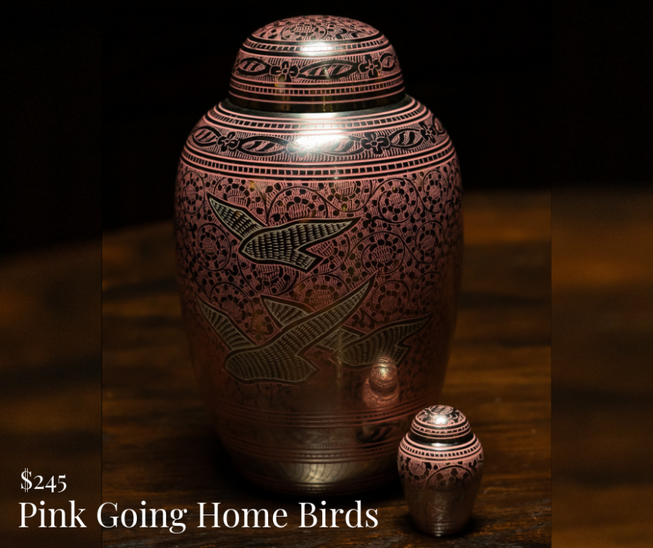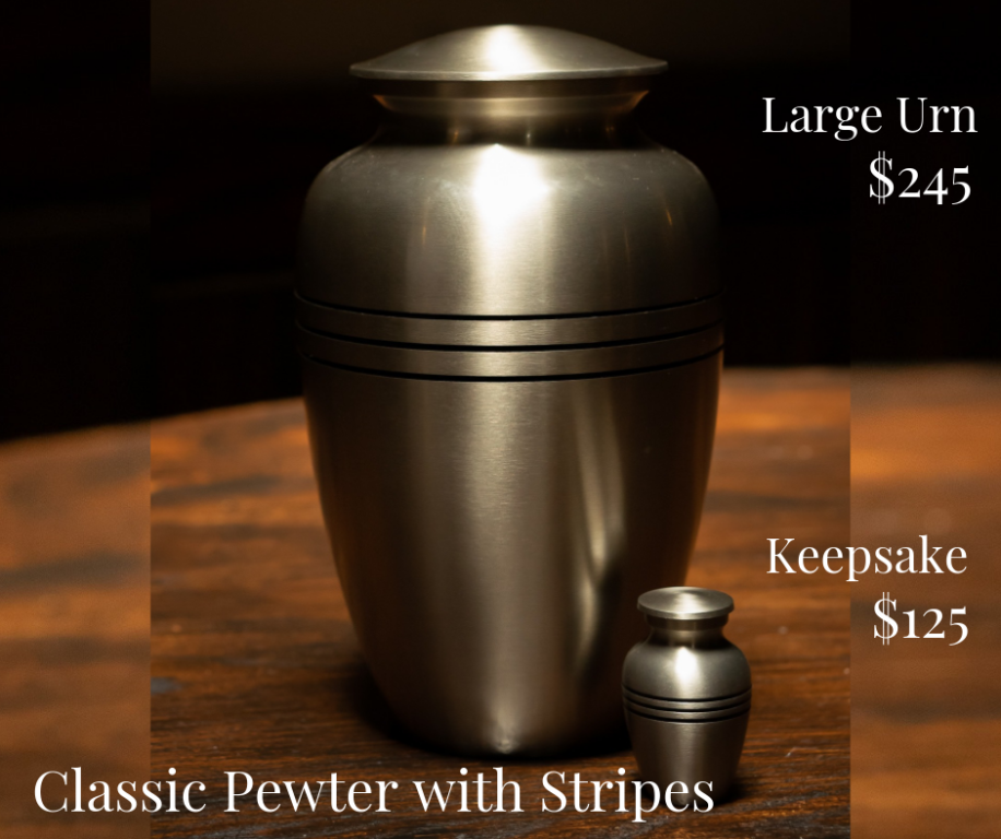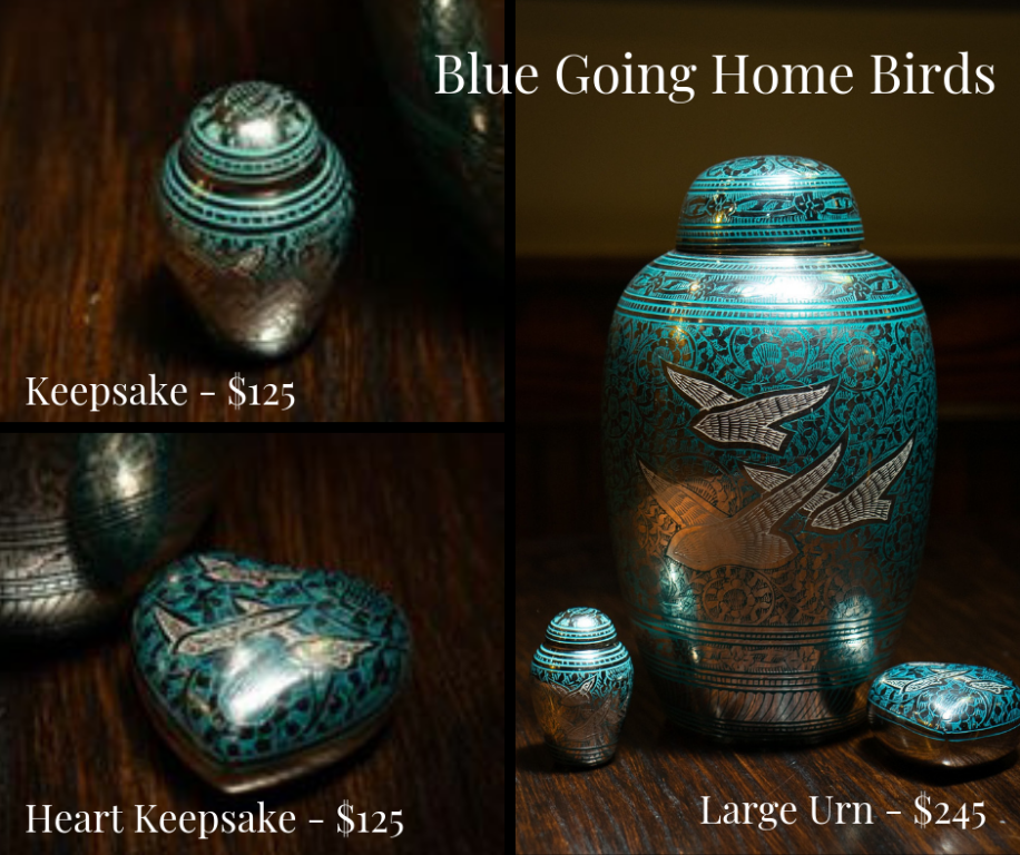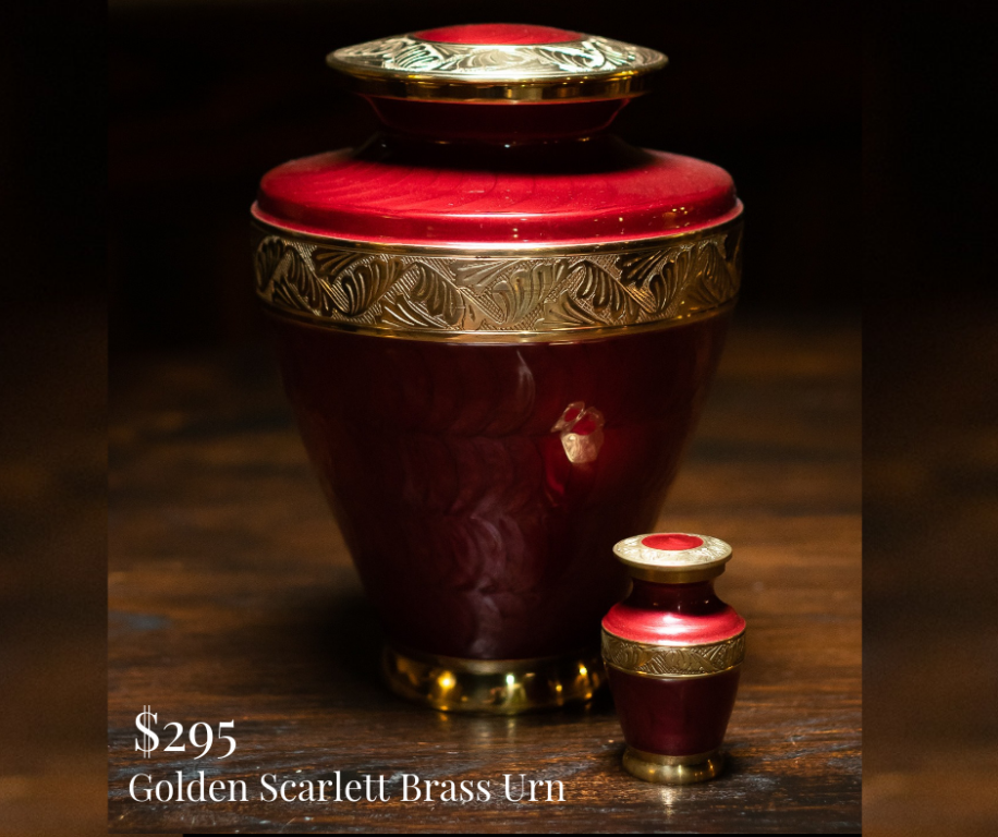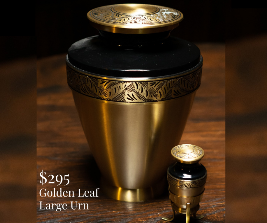 Our traditional urns make for lovely display pieces and are beautiful reminders of those we have lost. Choose from our selection of elegant urns, like the Mother of Pearl urn at the low price of $220.00 or the American Flag Brass urn for only $195.00. Additionally, we offer smaller urn options, like the intricate Black and Gold Heart Keepsake for only $125.00.