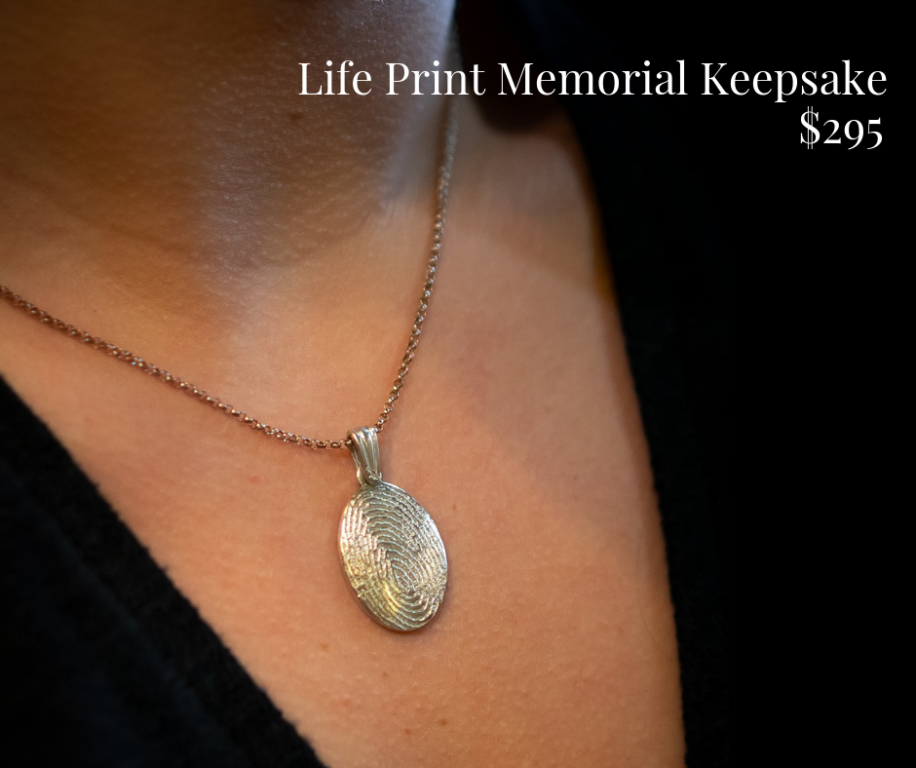 Our Life Print Memorial Keepsake Collection are embossed with the fingerprints of late loved ones, capturing their uniqueness in a beautiful way.